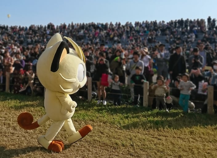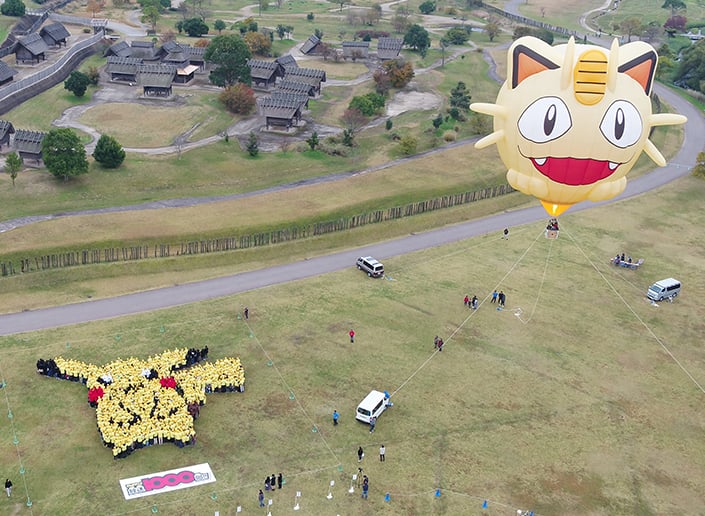 上空から撮影したピカチュウ人文字。