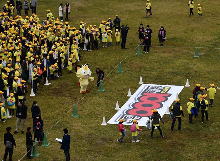 ピカチュウの巨大人文字づくりに挑戦、そして見事成功!