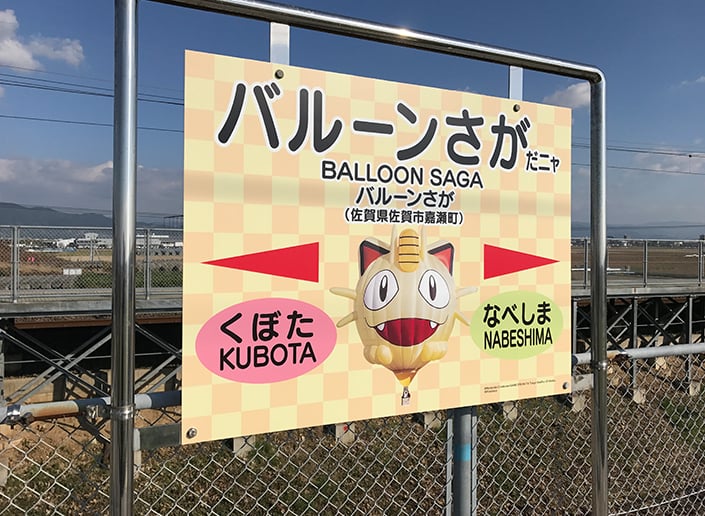バルーンさが駅の駅名標も